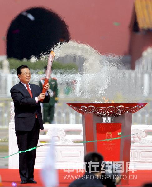 图片 奥运火炬接力启动 胡锦涛主席点燃圣火盆_极速体育_中国足彩网-在线|官网